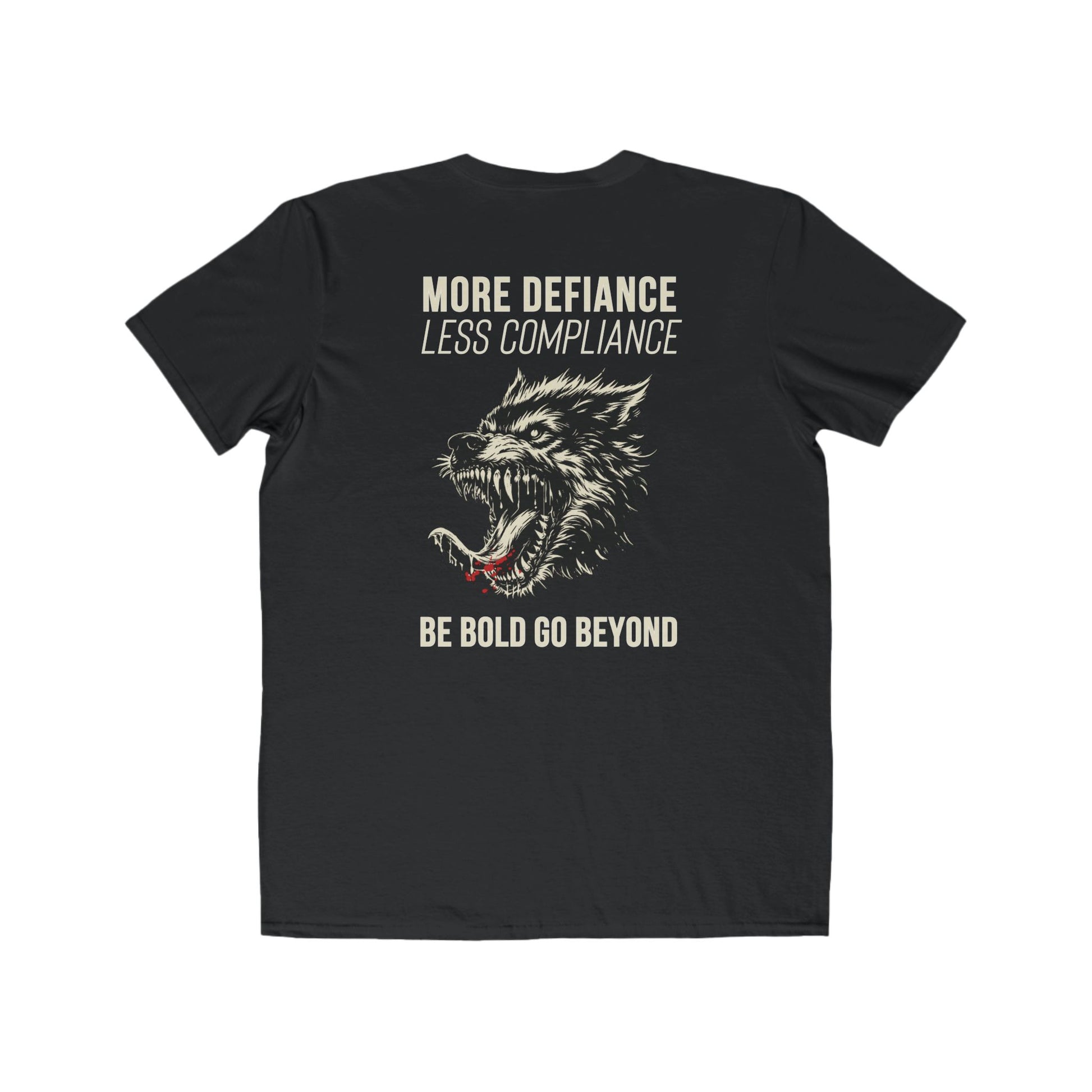"More Defiance, Less Compliance" isn’t just a statement—it’s a way of life. This tee is for the independent thinkers, the bold leaders, the ones who refuse to be tamed. Featuring a vicious wolf logo, it represents unapologetic sovereignty, resilience, and the strength to walk your own path.
